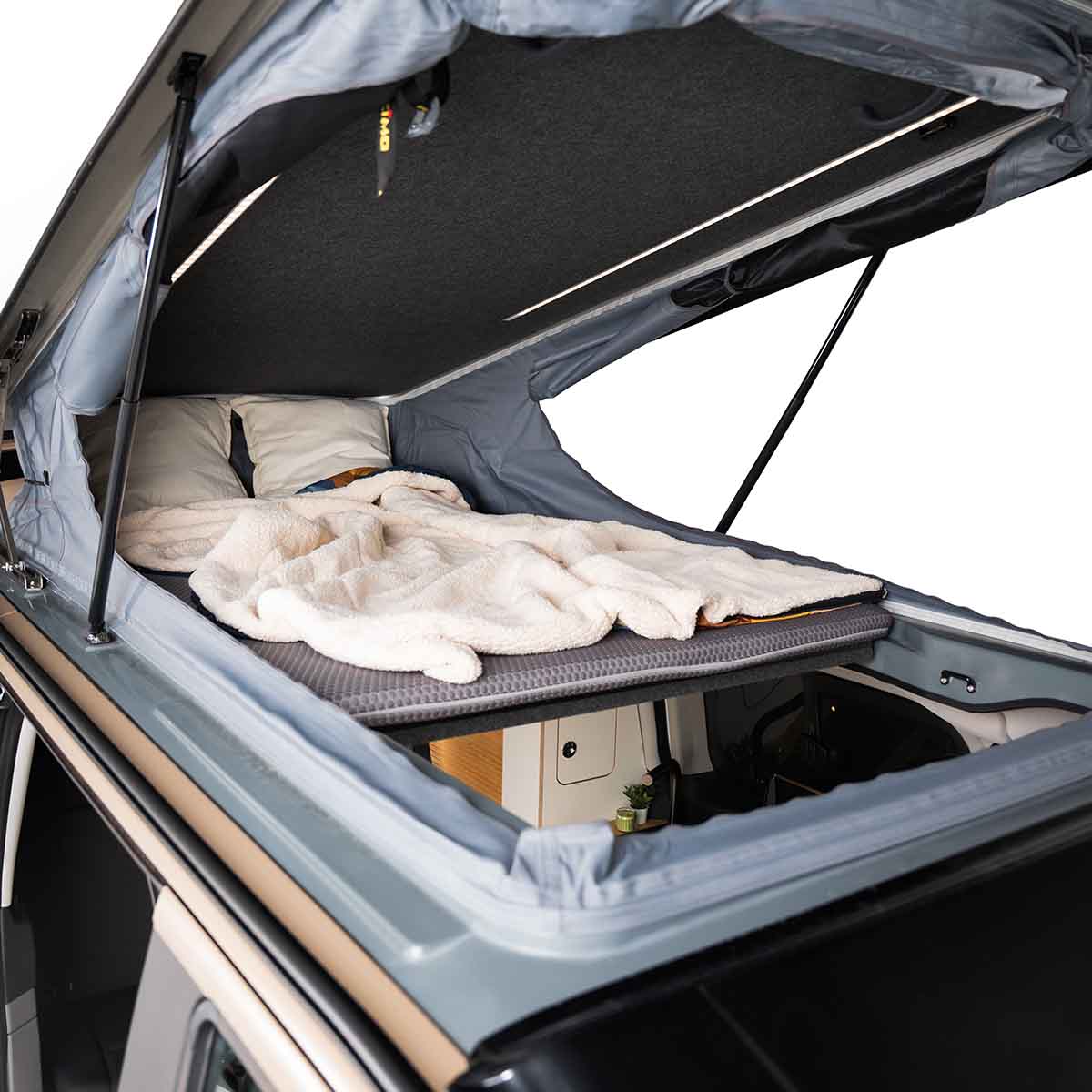 Ein eingebautes Schlafdachbett schafft neue Möglichkeiten der Raumnutzung im Camper und Transporter. Als offizieller SCA-Partner haben wir die besten Aufstelldächer.