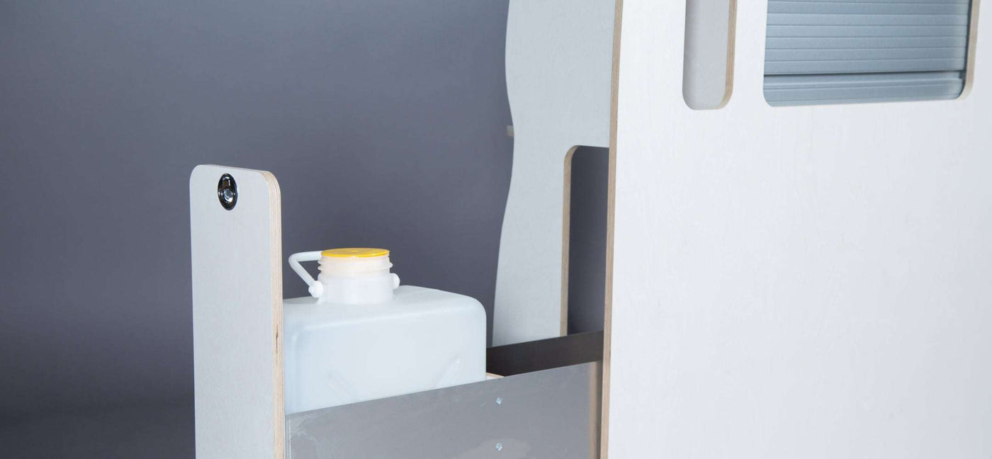 Ganz gleich welchen Camper du fährst, die Wasserversorgung funktioniert immer ähnlich. Das Wasser wird in einem Frischwassertank gelagert, von dem aus es in den Wasserhahn gepumpt wird. Durch den Abfluss des Spülbeckens wird es anschließend in den Grauwasserkanister geleitet. Beim Wohnwagen mit Dusche wird durch einen weiteren Wasserschlauch das Wasser in die Duschbrause gepumpt.